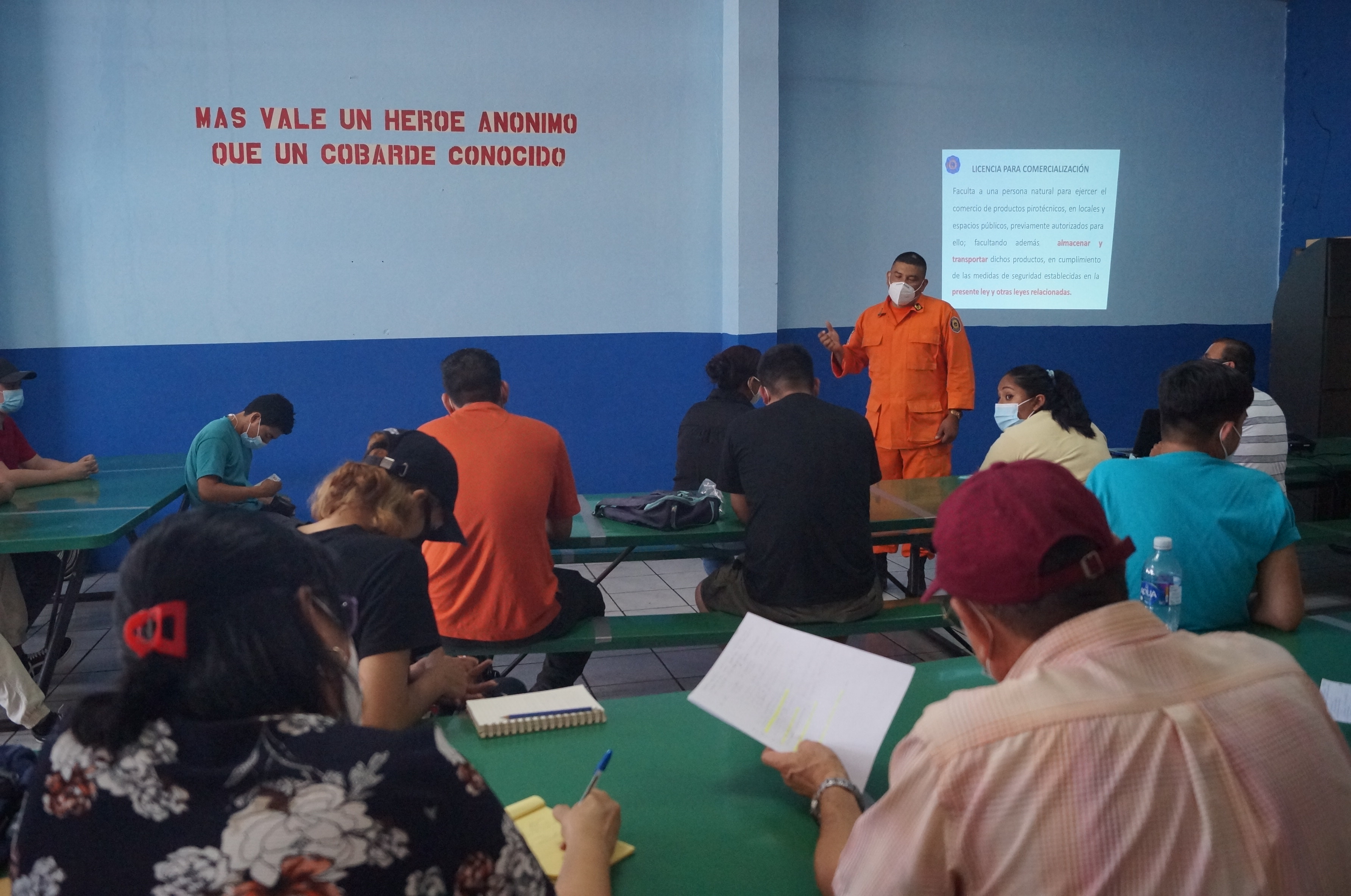 El Cuerpo de Bomberos de El Salvador, dependencia del Ministerio de Gobernación, continúa capacitando a comerciantes, fabricantes y responsables de espectáculos con productos pirotécnicos, en coordinación con la Cámara Salvadoreña de Artesanos –CASART-, con el objetivo de reducir los riesgos que se susciten ante posibles emergencias en todo el territorio, con énfasis en prevenir personas lesionadas y pérdida de vidas humanas.