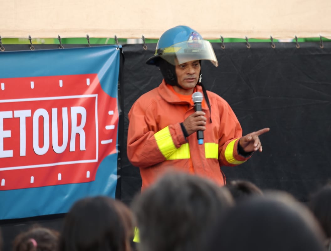 Como un complemento a este tipo de cine, el Cuerpo de Bomberos de El Salvador dispuso una motobomba donde se mostró el trabajo que realiza; así también, se emitieron medidas para evitar incendios en el hogar.