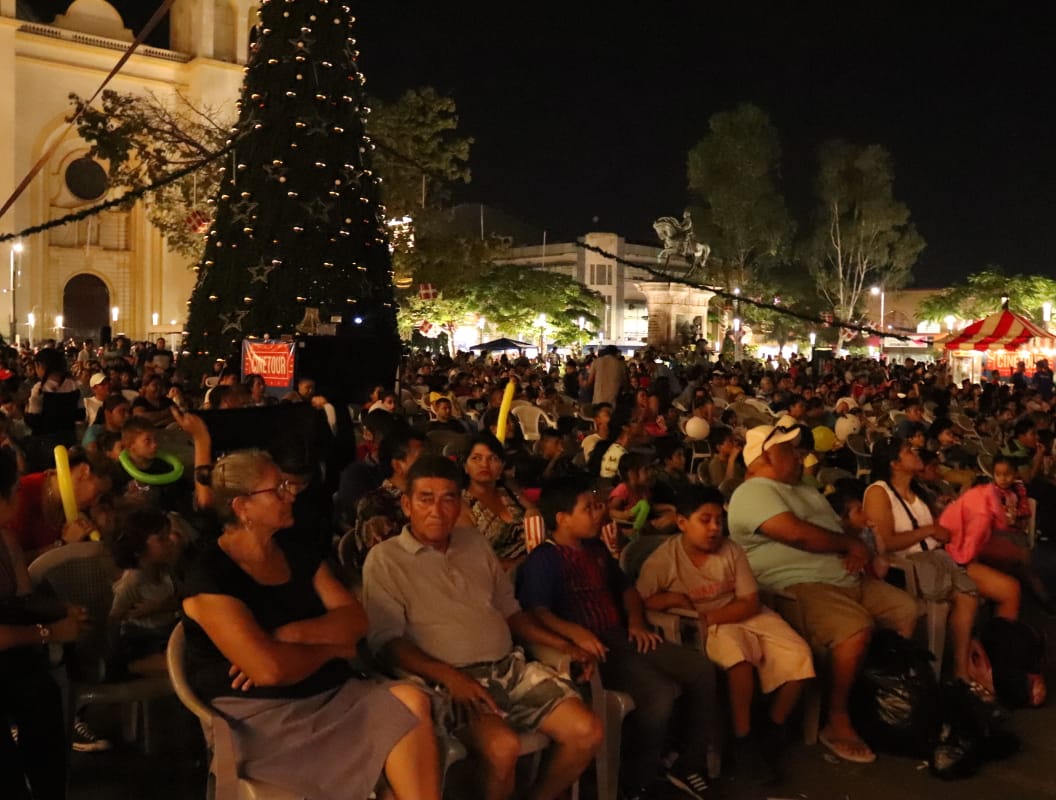 San Salvador, 3 de diciembre 2019.- Con el objetivo de ofrecer un espacio de recreación y formación con la niñez y juventud, el Ministerio de Gobernación realizó una jornada de cine comunitario denominado: CINETOUR, en la Plaza Barrios de San Salvador.