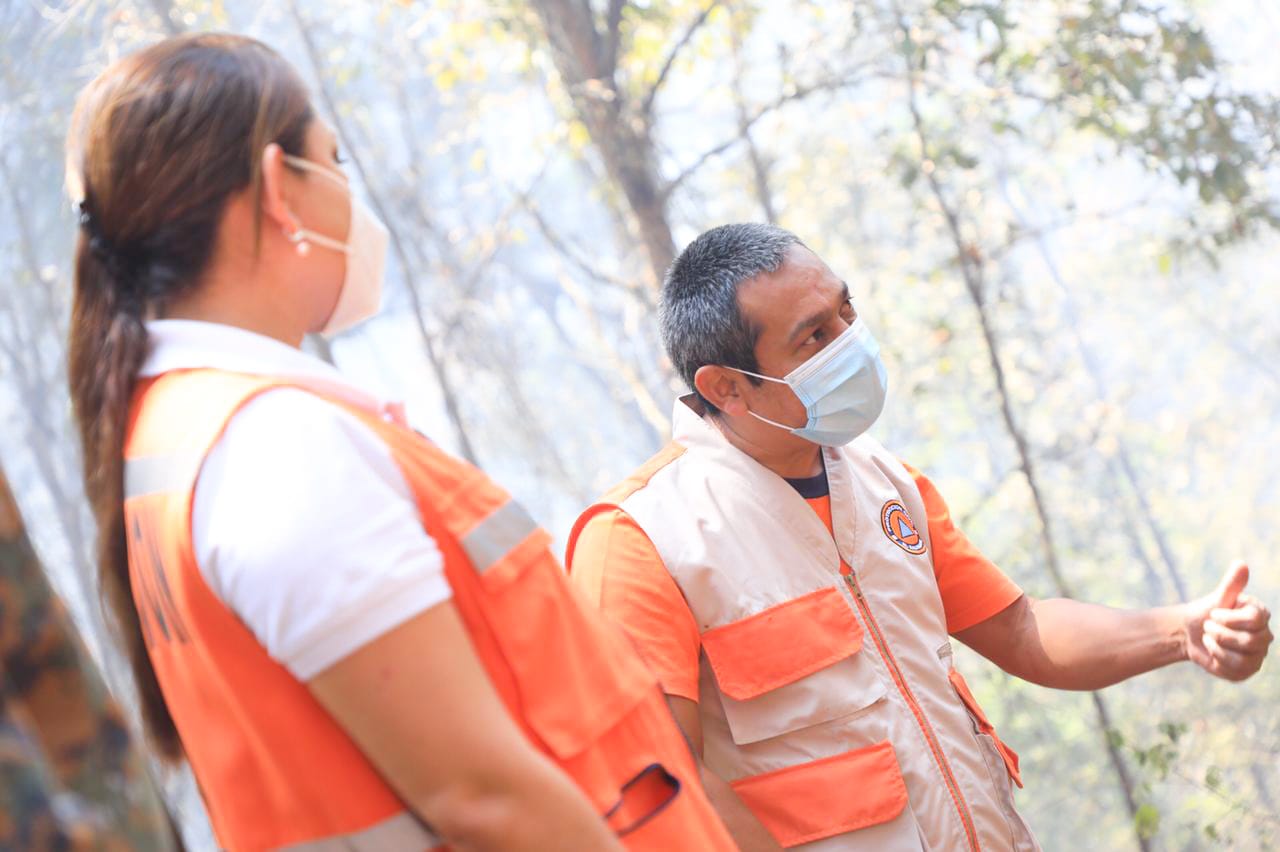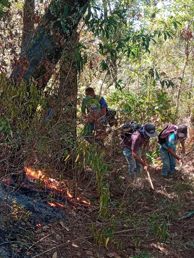 Entre el personal que labora se encuentran más de 70 personas entre bomberos, elementos del Destacamento Militar, guardarecursos especializados del MARN y pobladores quienes están atendiendo alrededor de 40 manzanas del bosque que han resultado afectadas por el siniestro, evitando que se propague a una zona más amplia.