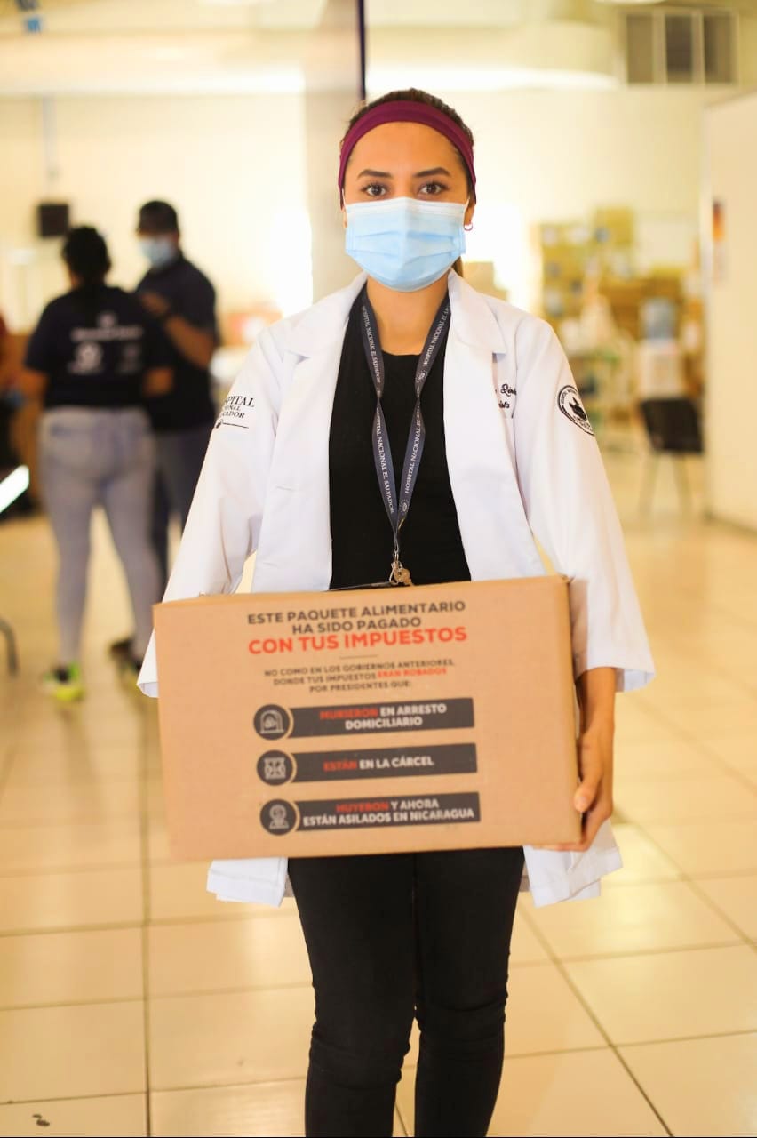 La doctora Carolina Martínez del Hospital Zacamil nos manifestó: «En nombre de mis compañeros y de nuestra familia quiero darle las gracias por pensar en nosotros los de primera línea»