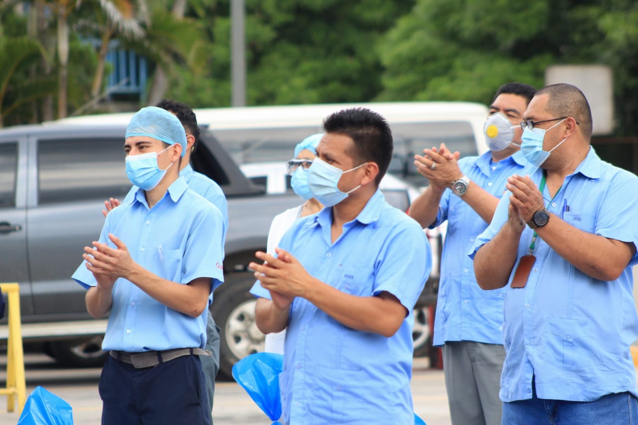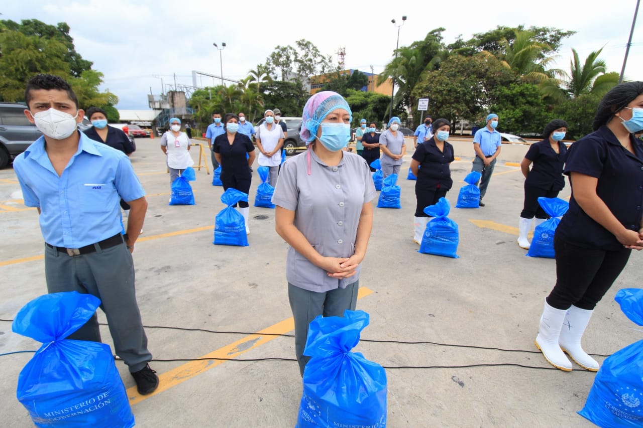 “El propósito es garantizar la seguridad alimentaria de hombres y mujeres que se mantienen trabajando en primera línea en combate contra el COVID-19, hablamos de quienes realizan limpieza y brindan seguridad en los hospitales del ISSS”, destacó el ministro de Gobernación Mario Durán.