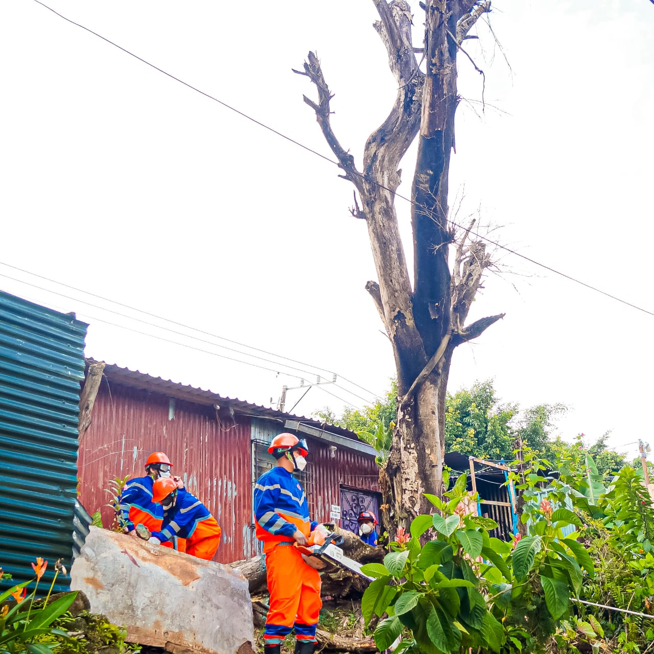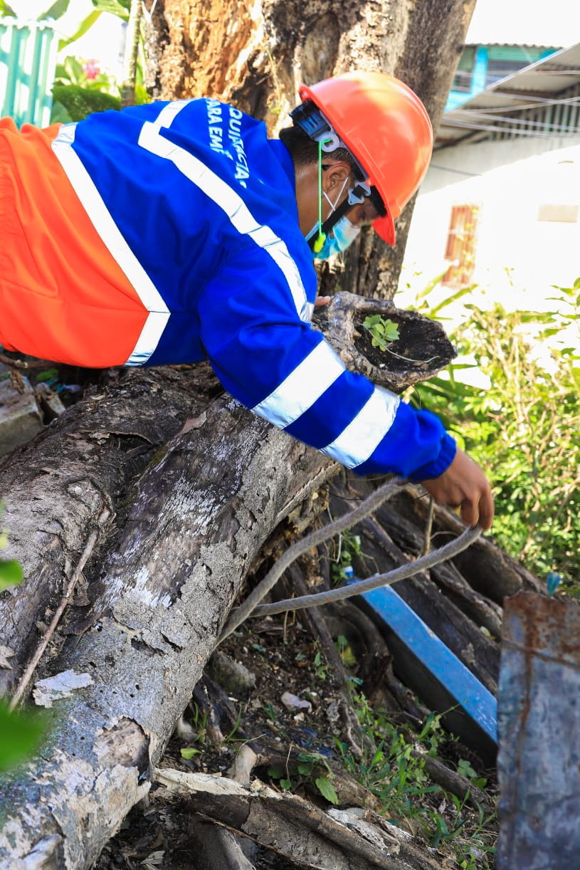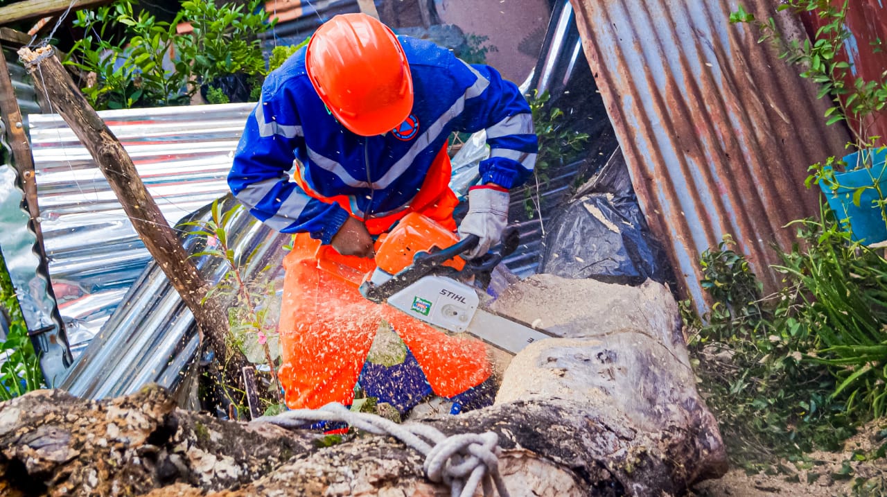 El trabajo especializado de los Equipos Tácticos Operativos, atendió la remoción de un árbol y aseguró el área vecinal de las familias de la comunidad Bendición de Dios, en la colonia Dina sobre la 41 Avenida Sur, de San Salvador.