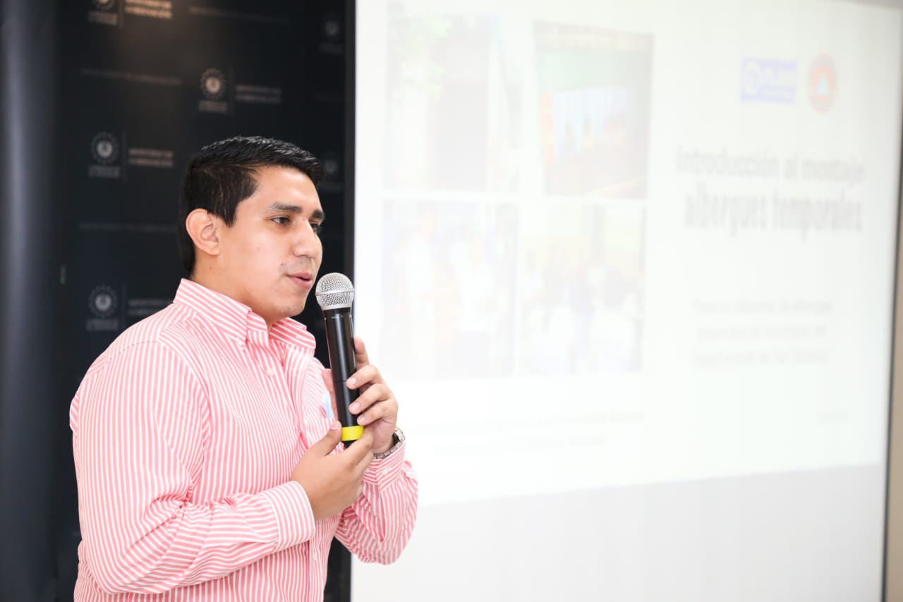 «Esta capacitación nos brinda la preparación que debemos tener para el manejo de albergues y obviamente la atención integral para las familias que requieran este tipo de atención, implementando una nueva e innovadora metodología que se aplica por la excelente coordinación entre las instituciones que conforman el Sistema Nacional de Protección Civil», Stanley Escobar, jefe de albergues de la municipalidad de Soyapango.