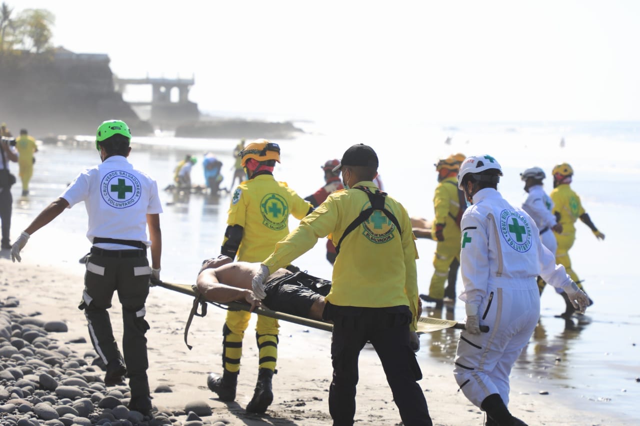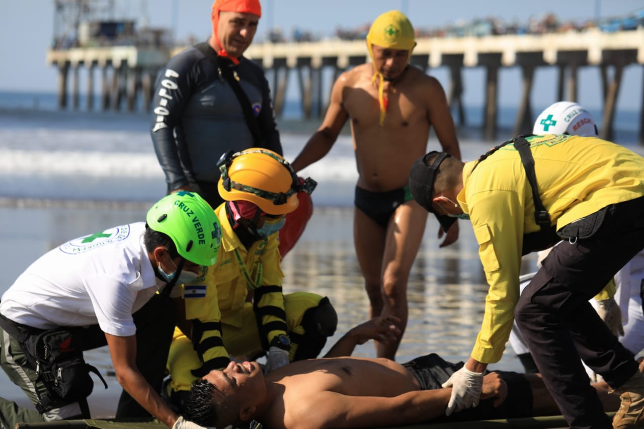 La situación simulada describió un escenario de 11 víctimas afectadas por una corriente de retorno fueron rescatadas del mar, mediante un dispositivo de rescate acuático que requirió del apoyo guardavidas, rescatistas y socorristas de la Fuerza Naval de El Salvador, Politur, cuerpos de socorro y una Unidad de Rescate Anfibio de la UMO.