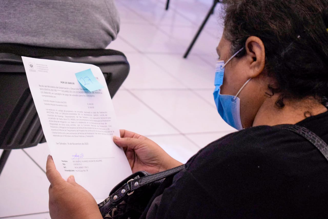 El Ministro de Gobernación y presidente de la Comisión Nacional de Protección Civil, Mario Durán, consciente de las necesidades de las familias de la residencial Santa Lucía de Ilopango, realizó la entrega del séptimo desembolso para el período de octubre y noviembre para los 121 grupos familiares de la zona, con el que cubrirán el pago temporal de alquiler.