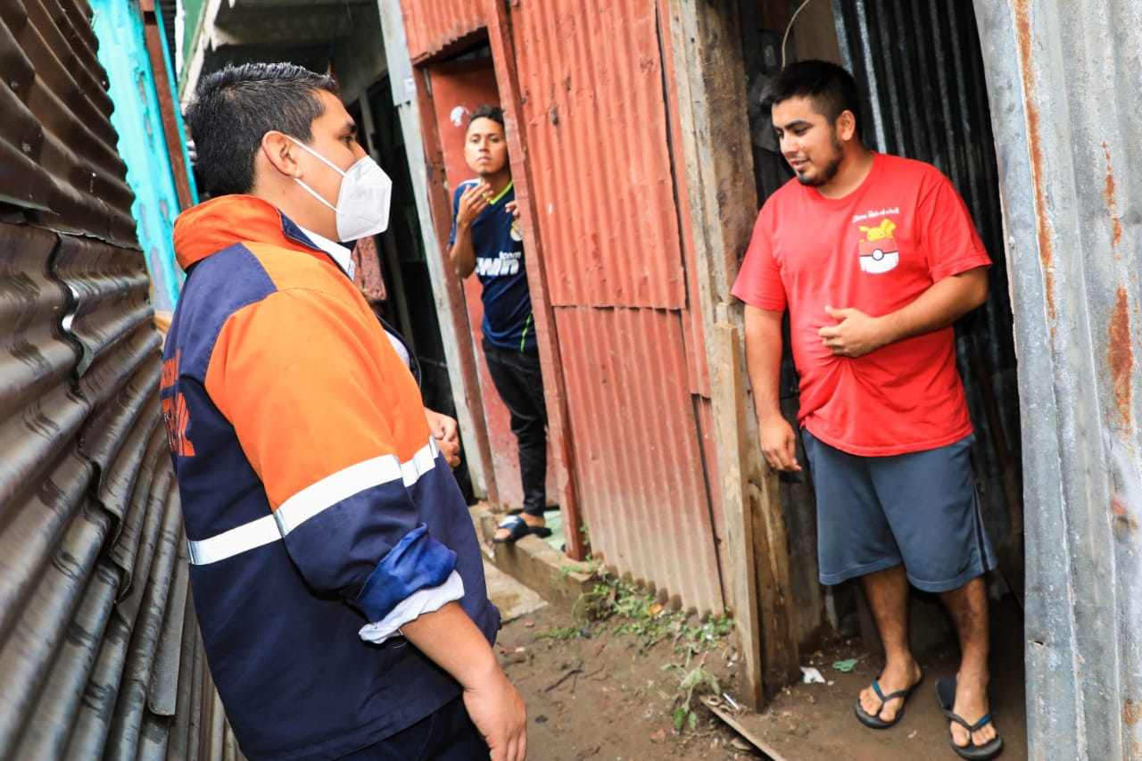 Asimismo, los funcionarios visitaron a los habitantes de la comunidad Las Palmas de San Salvador para realizar la entrega de Paquetes Alimentarios del Programa de Emergencia Sanitaria y realizar una verificación de los daños ocasionados por el incremento del caudal de la quebrada La Lechuza que inundó sus viviendas.