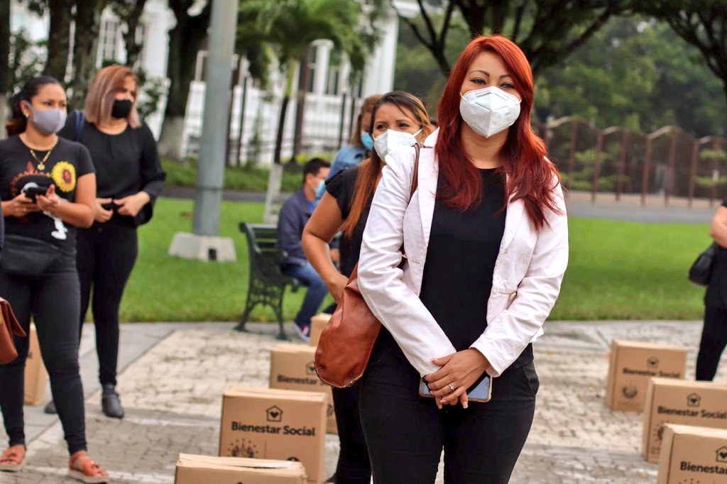 Ministro de Gobernación Mario Durán entrega 1,400 paquetes alimentarios a cosmetólogas de San Salvador afectadas por la pandemia