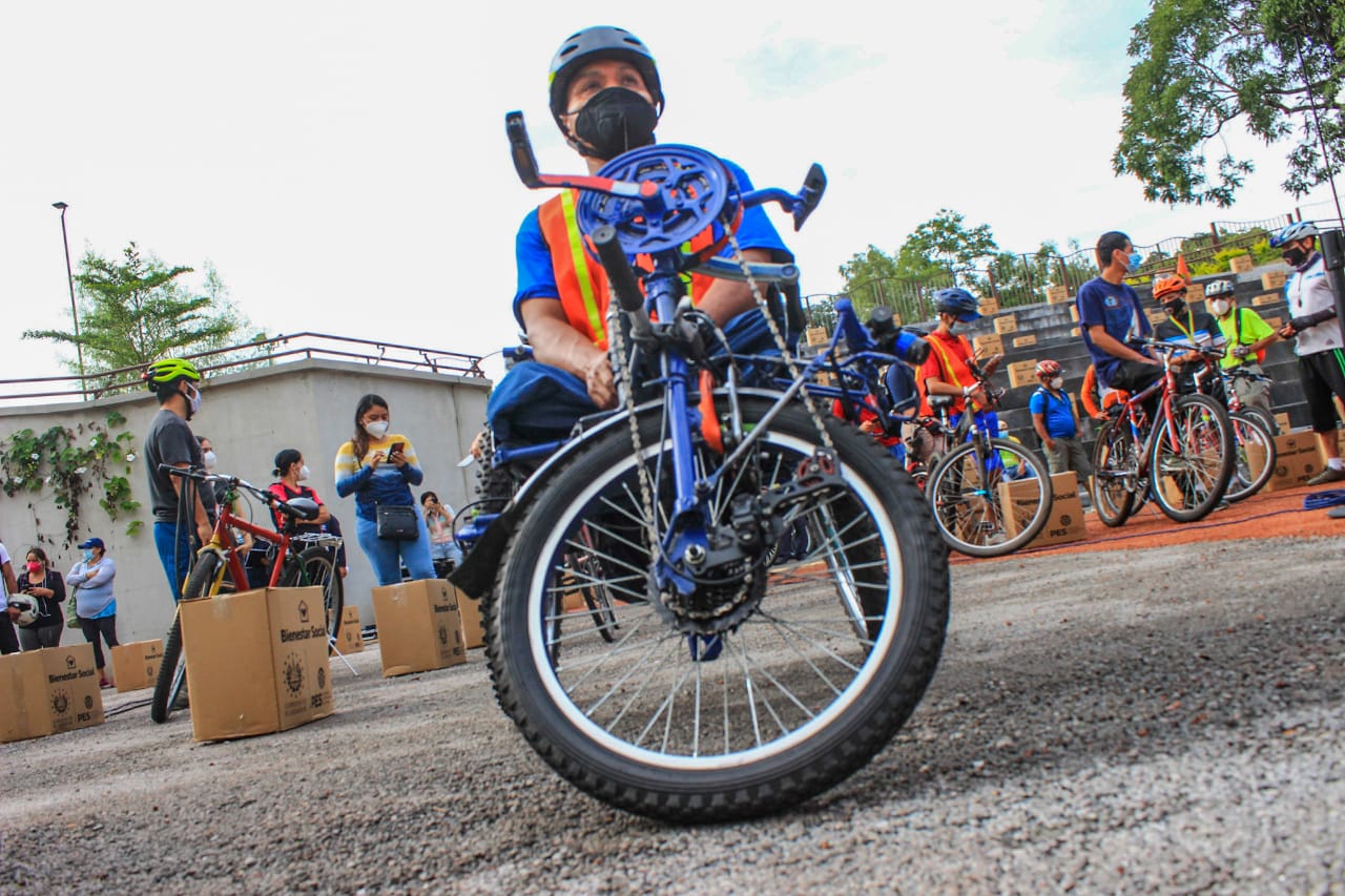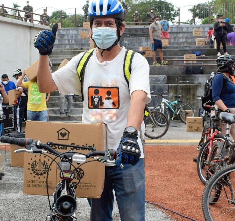 Esta vez, hizo entrega de 600 paquetes alimentarios a ciclistas capitalinos, que consisten en insumos de primera necesidad y que significan un alivio para sus familias, que han estado pasando momentos difíciles a raíz del COVID – 19 en El Salvador.
