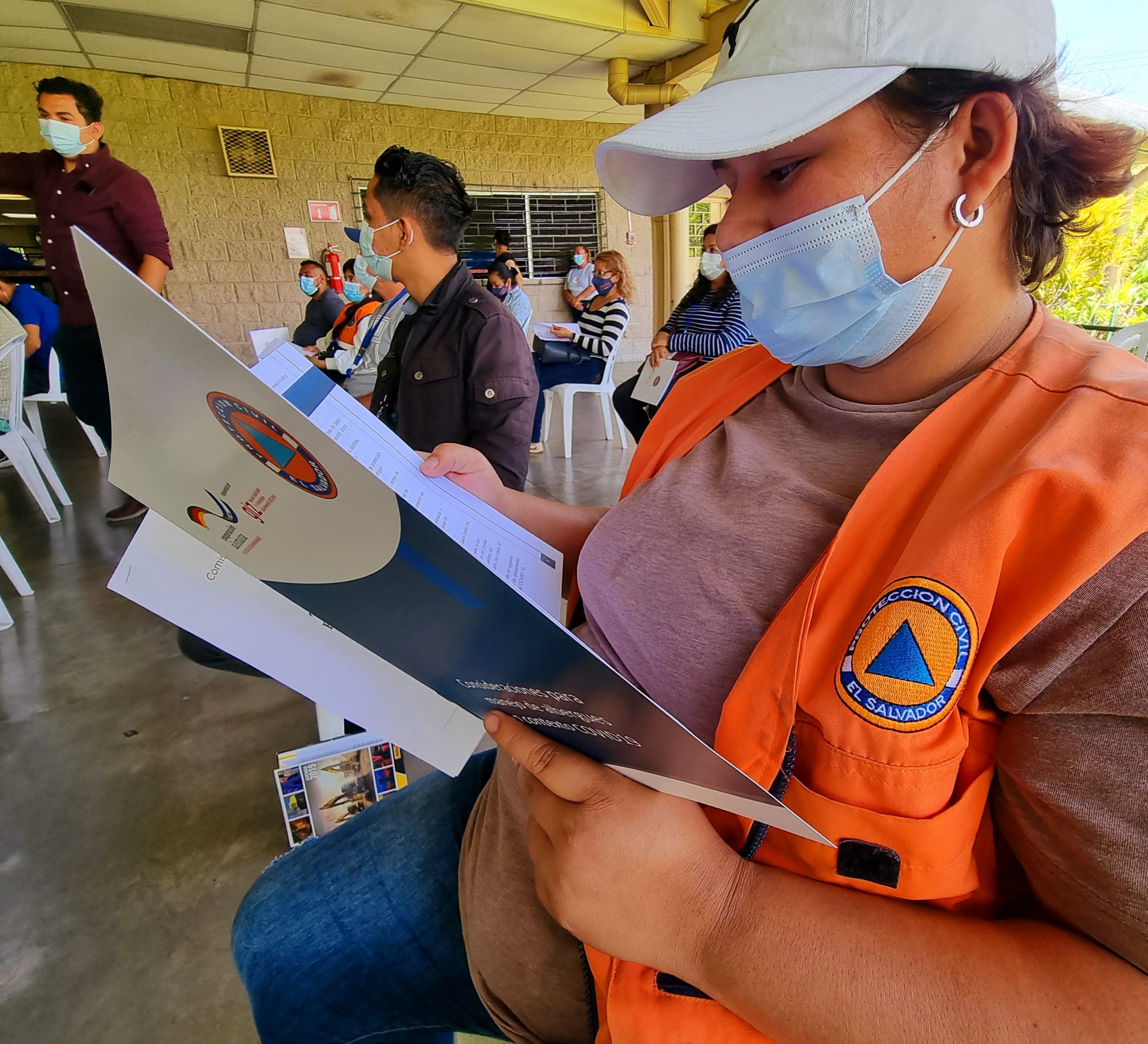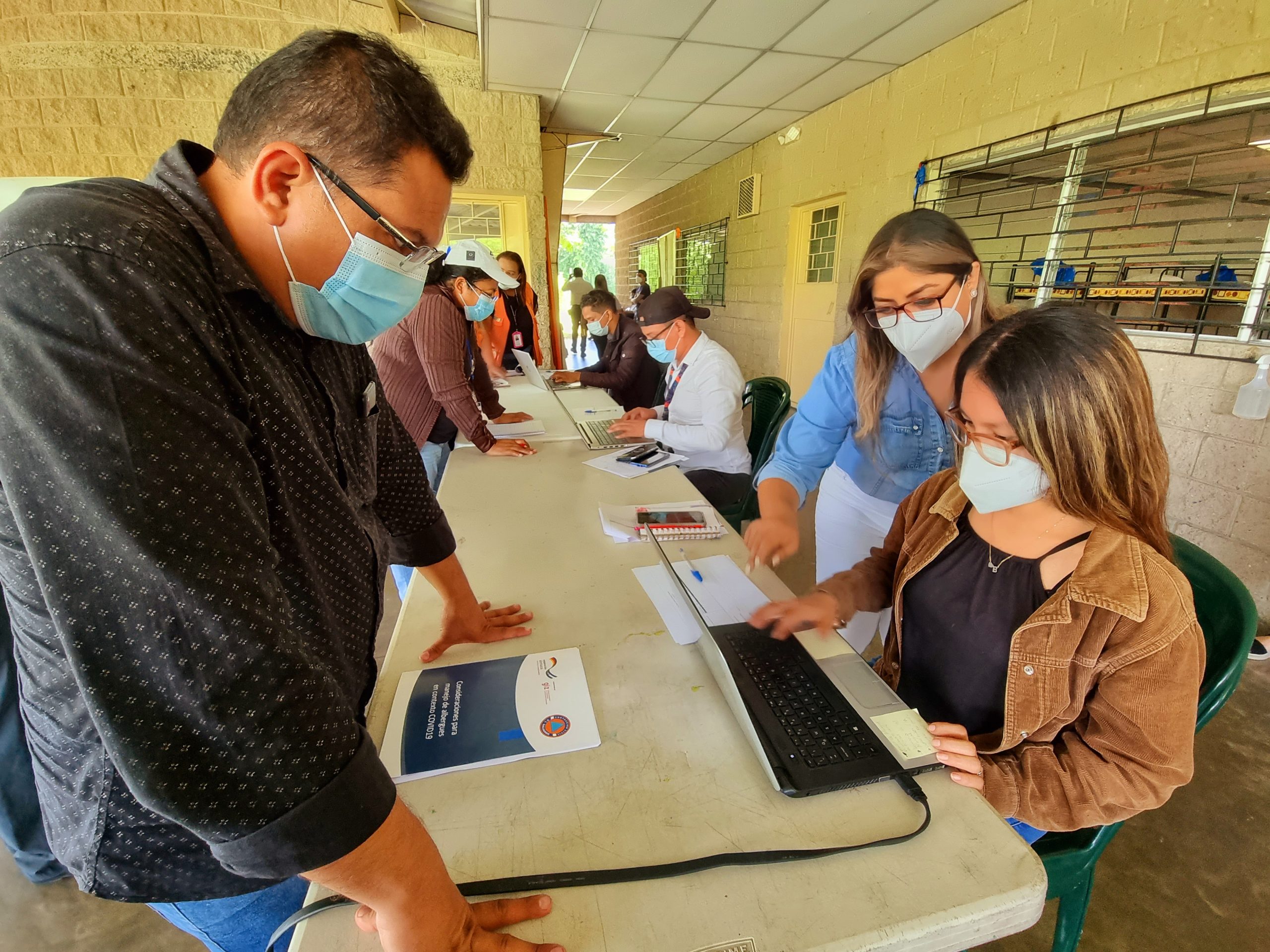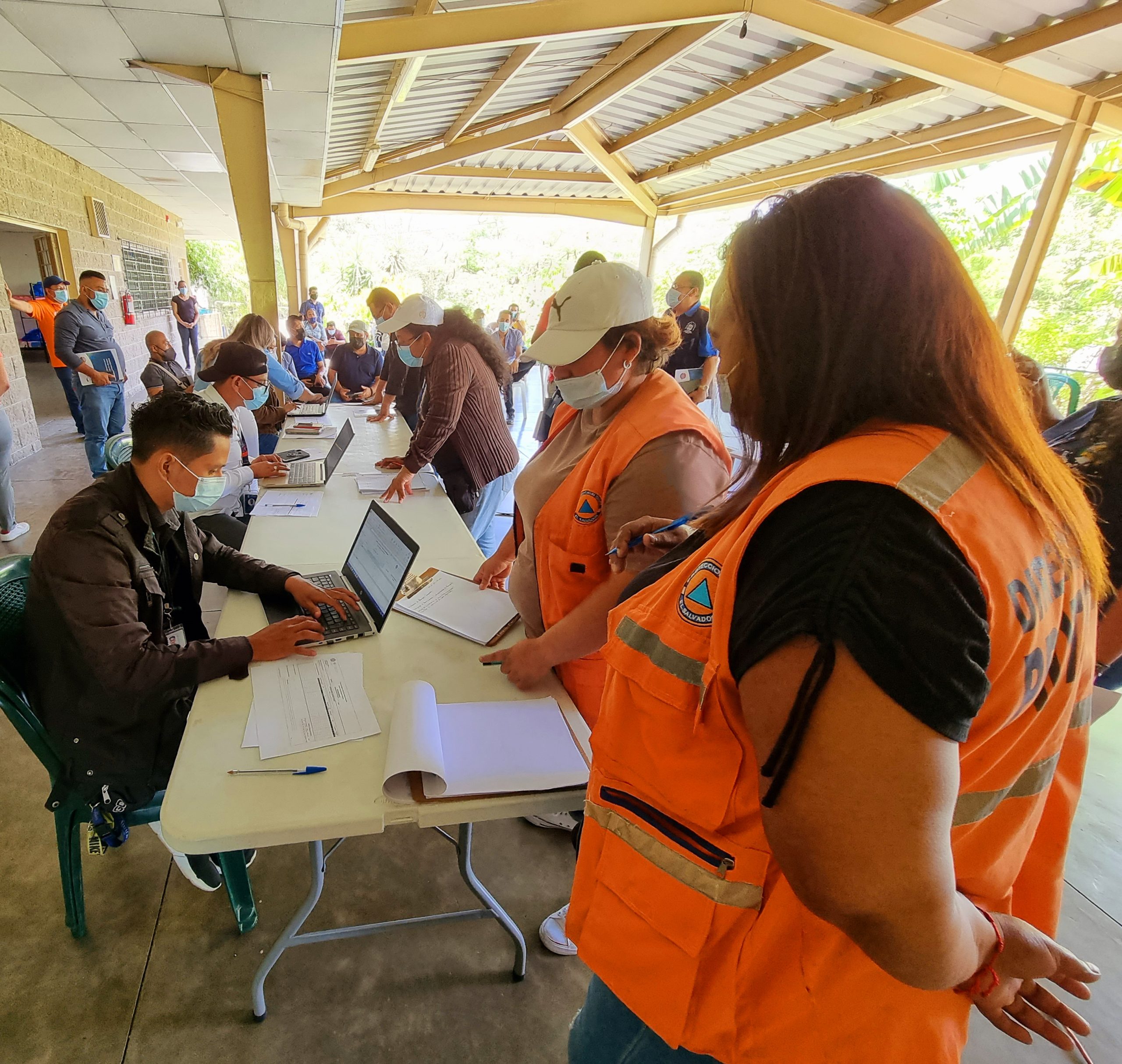 Durante la jornada se les instruyó sobre gestión de información en contexto de emergencias, posteriormente realizaron un ejercicio práctico paso a paso, de cómo deben de acoger a posibles albergados, utilizando el censo general de albergue digital que permite registrar de manera directa y efectiva los datos generales de las posibles familias resguardadas, además permite una rápida organización y ubicación de los centros de atención de personas resguardadas. Para esta acción se utilizaron las instalaciones del mega albergue del Polideportivo España, instalado en el municipio de Soyapango.