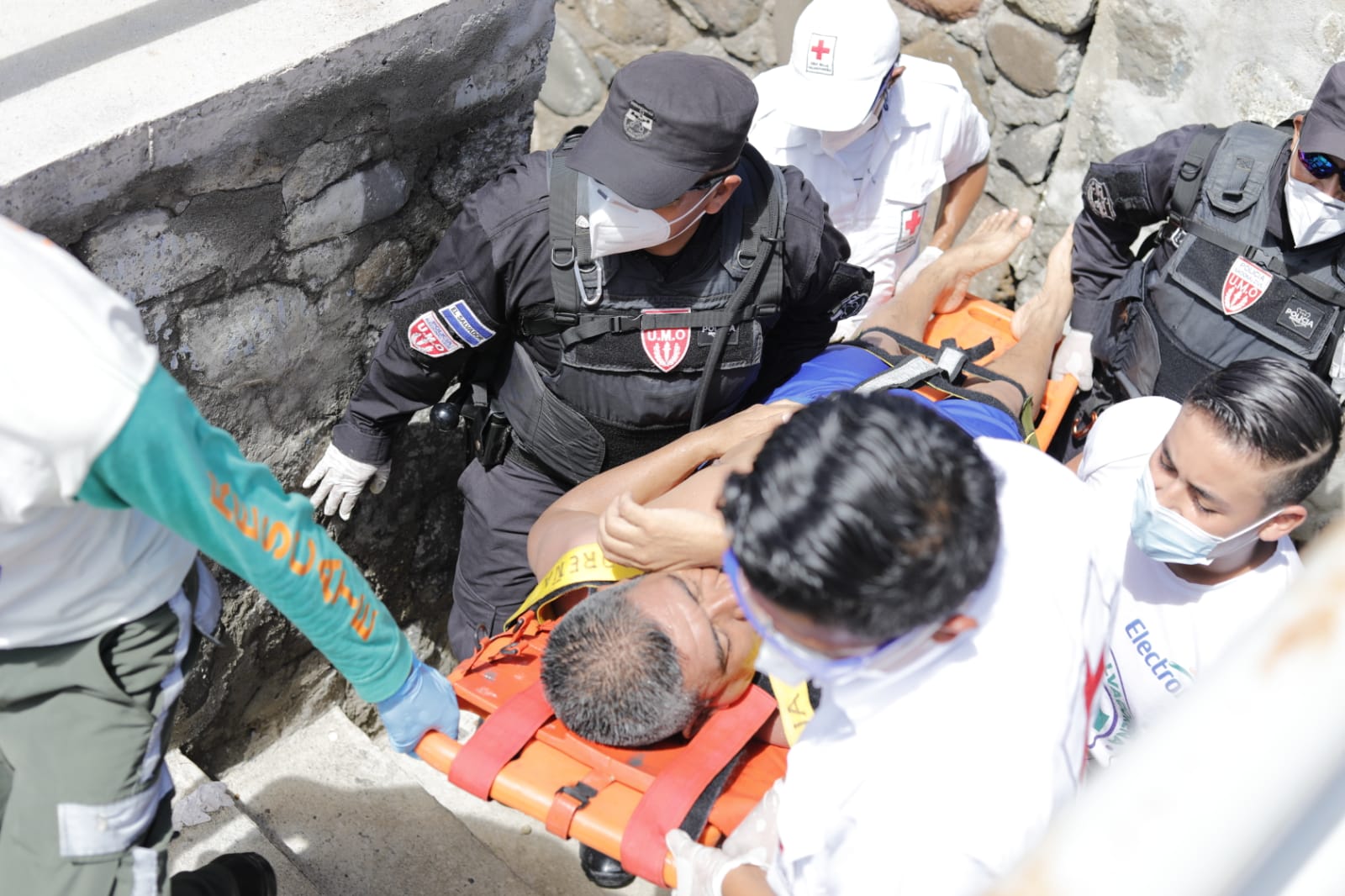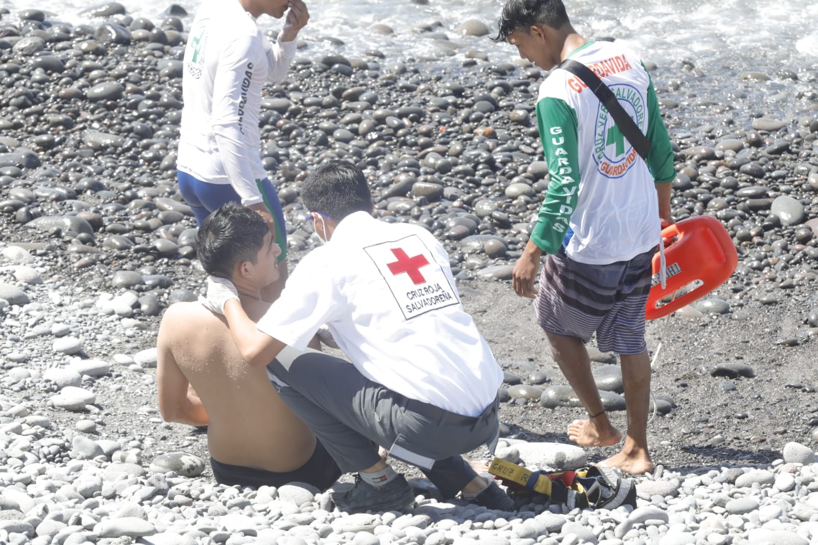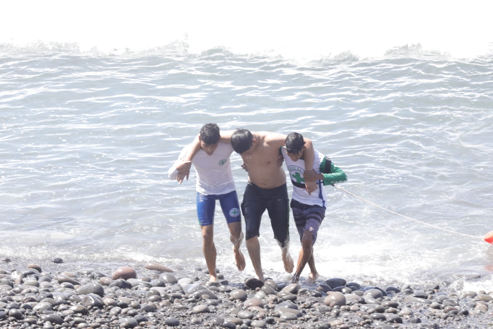 Hubo dos tipos de rescate de víctimas en el mar que fueron de rescate simple y profundo para 5 víctimas. Dos motos acuáticas de la Policía Nacional Civil se encargaron de los rescates profundos y los cuerpos de socorro, entre éstos la Cruz Roja y Cruz Verde se encargaron del rescate simple junto con el equipo anfibio del personal de la HUMO.