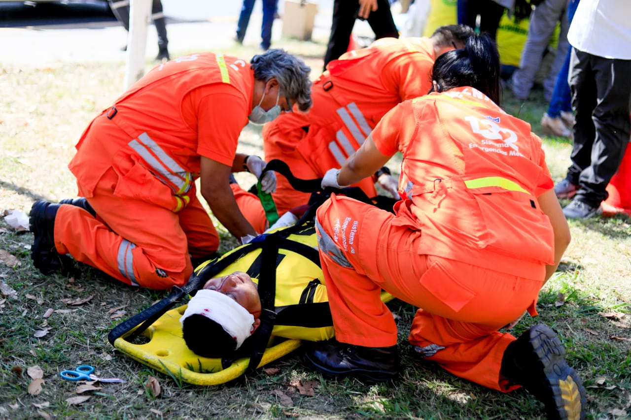 Dicho simulacro consistió en un incendio originado en 2 puestos de pólvora por un descuido en las normas de seguridad establecidas en el Reglamento Especial para el Control y Regulación de Artículos Similares a Explosivos, Sustancias Químicas y Productos Pirotécnicos.