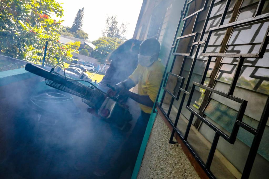 A fin de mejorar la calidad de vida de 1,458 familias de la colonia IVU de San Salvador, el ministro de Gobernación y presidente de la Comisión Nacional de Protección Civil, Mario Durán junto a un equipo interinstitucional del Sistema Nacional de Protección Civil realizaron el lanzamiento de una jornada de fumigación y reparación de calles.