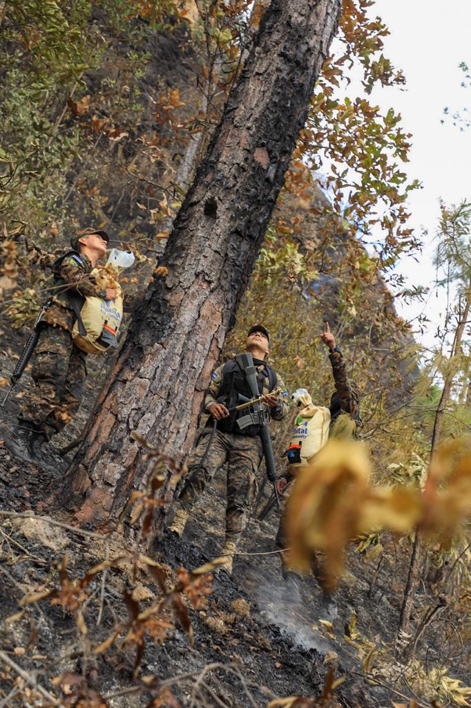 El Cuerpo de Bomberos dispuso vehículos todoterrenos, bombas de mochila y herramientas forestales. A estos esfuerzos se sumaron el equipo especializado de la Fuerza Armada con dos helicópteros equipados con el sistema Bambi Bucket para esparcir agua en puntos críticos y de difícil acceso.