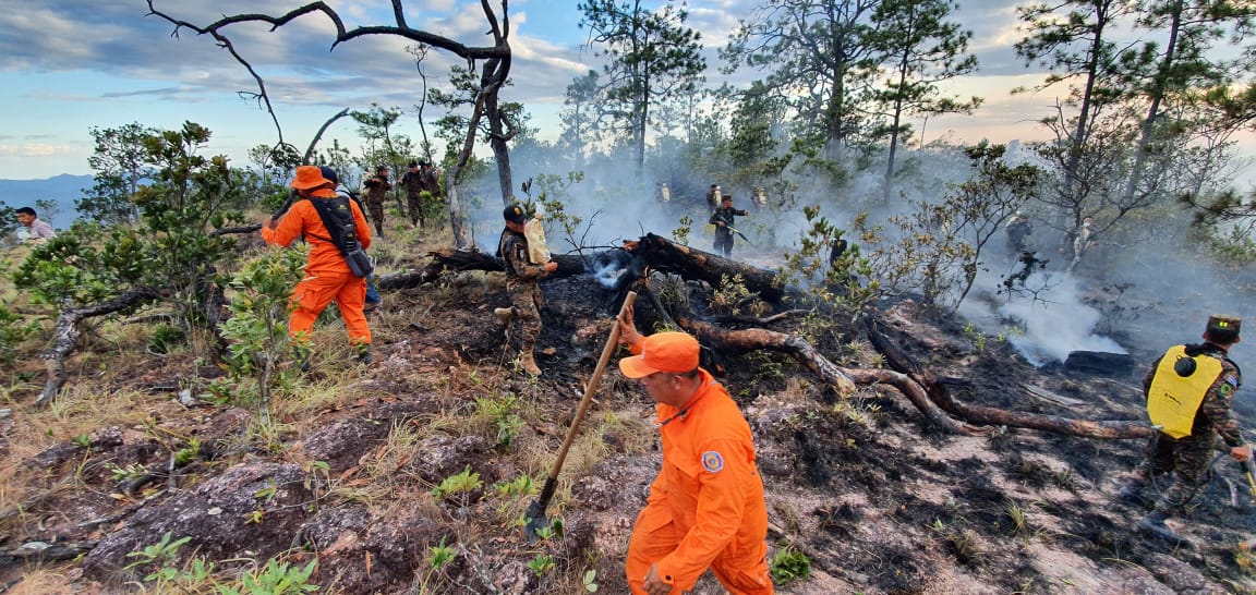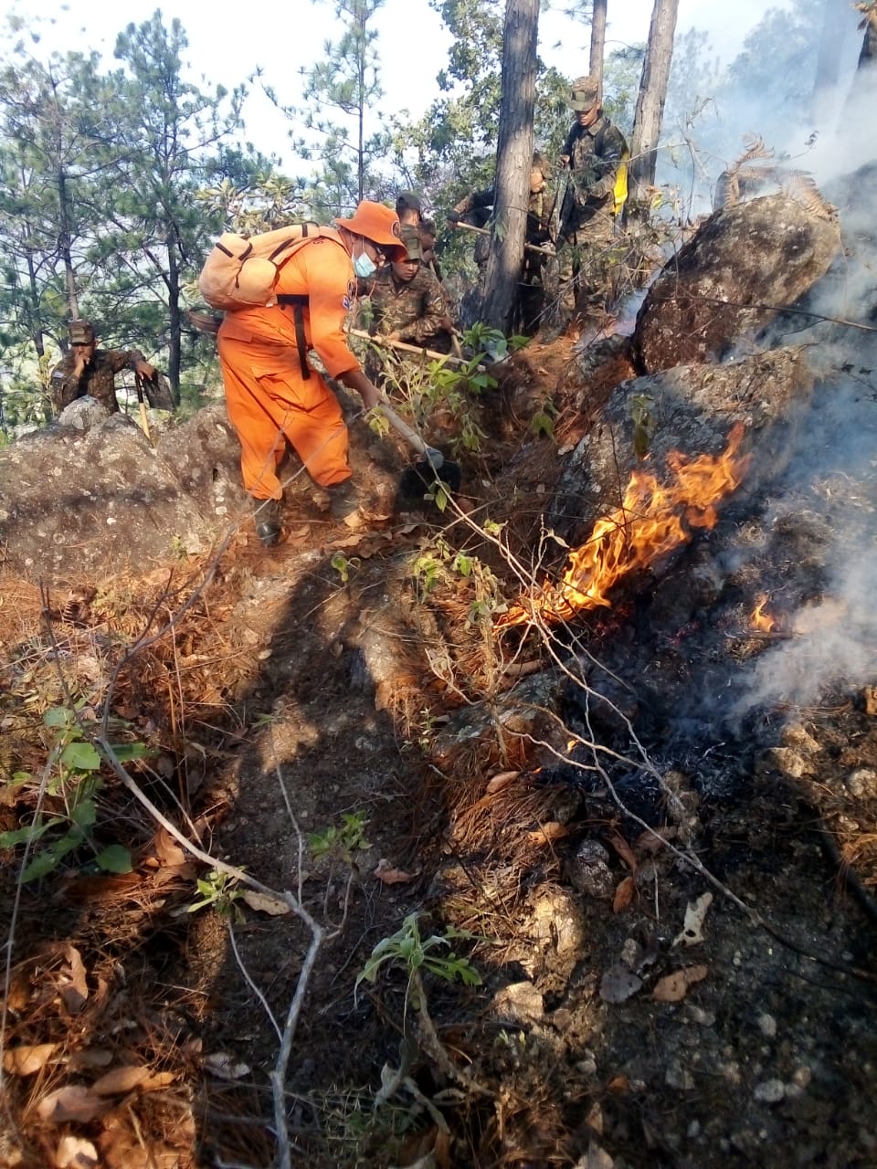 El Cuerpo de Bomberos junto a elementos de la Fuerza Armada, guardarrecursos especializados del Ministerio de Medio Ambiente (MARN) lugareños, asociaciones comunitarias, y de las municipalidades dieron su máximo esfuerzo para atender el siniestro en la zona boscosa de los municipios de Arambala y Perquin del departamento de Morazán.