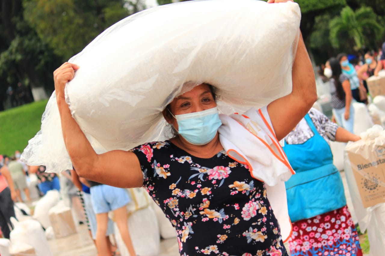 Cada paquete contiene insumos de primera necesidad que complementan a su canasta básica; además, un quintal de maíz, que constituye un apoyo para la preparación de pupusas o tortillas.
