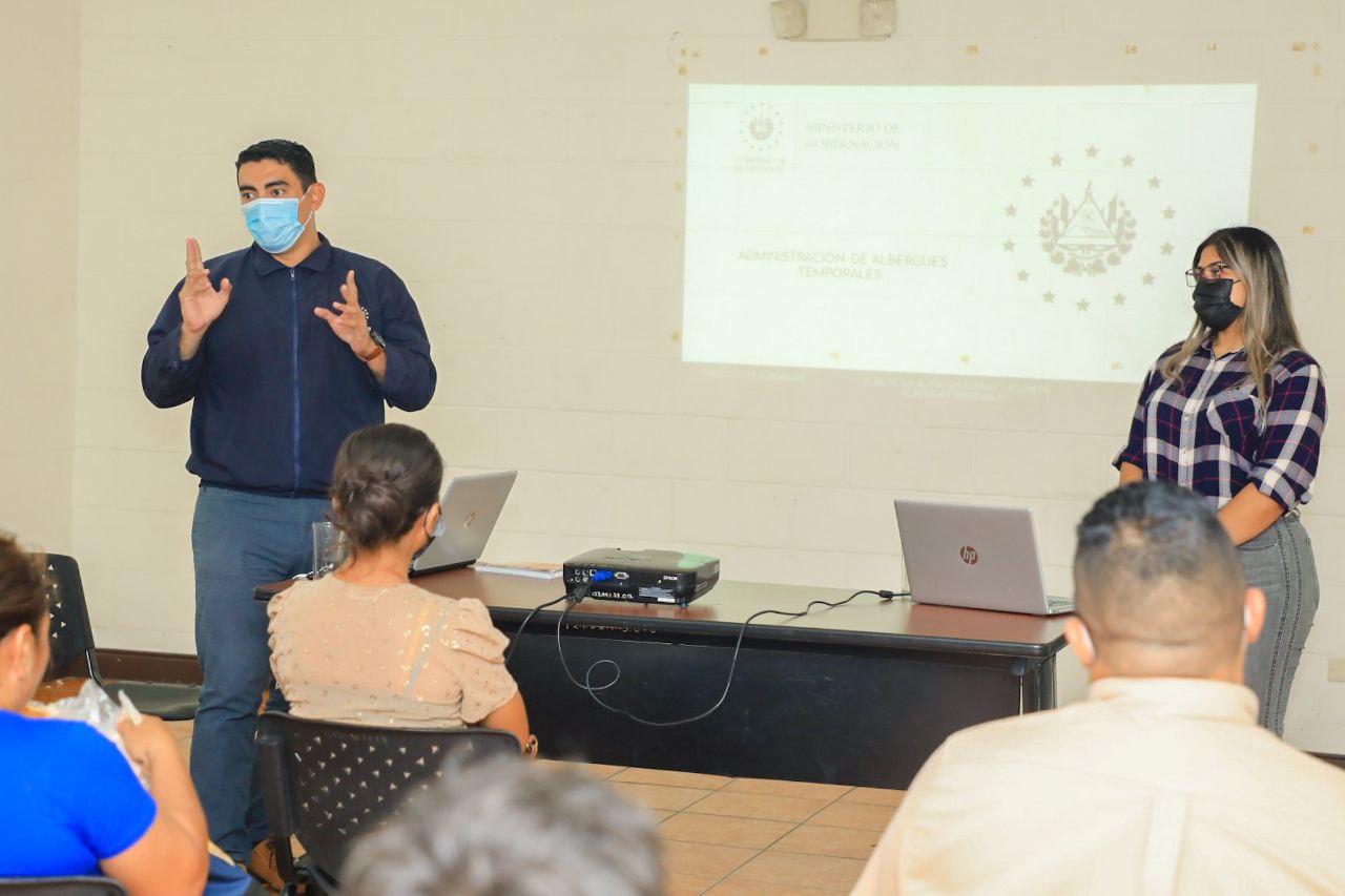 El Ministerio de Gobernación, a través de la Dirección de Albergues, realizó una jornada de capacitación sobre la administración, coordinación, funcionamiento y manejo de información de albergues temporales para los 18 enlaces municipales de albergues del departamento de La Unión y de las 23 municipalidades de Usulután.